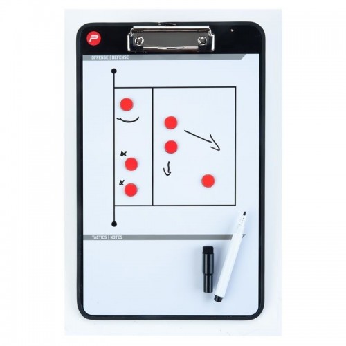 Puren kaksipuolinen, magneettinen ja kuivapyyhittävä valmentajan taulu on apuväline taktiikkapalavereihin ja tulosten seurantaan. Yhdellä puolella taulua on koko kenttä pelien havainnollistamiseen ja toisella taas valkoisia ja punaisia magneetteja joukkueen ohjeistamiseen sekä oma alue kentän tapahtumien kirjaamiseen. Väline auttaa valmentajaa kommunikoimaan selkeämmin ja nopeammin joukkueen kanssa. Tauluun voi myös kirjoittaa tärkeitä ja muistettavia avainasioita. Sisältää: Taktiikkataulun, tussin ja magneetit.